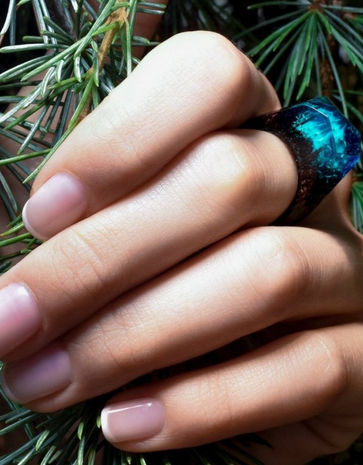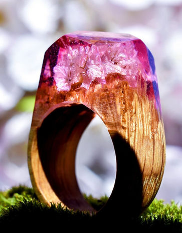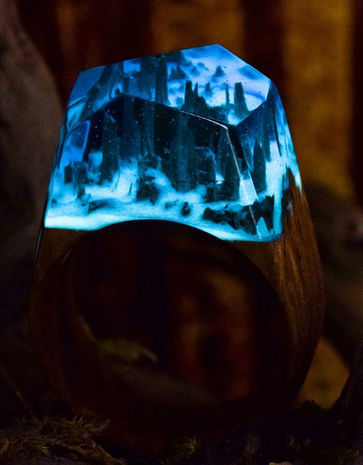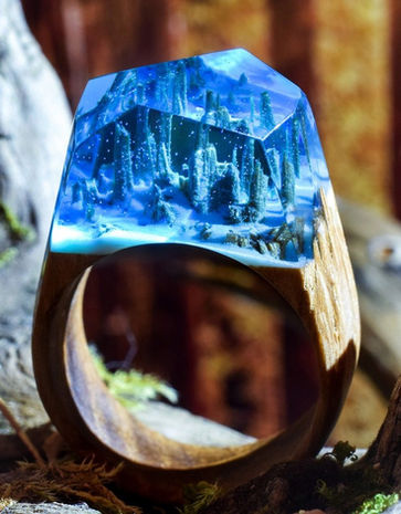 They’re all handmade using fresh wood, jewelry resin, and beeswax, and no two rings are the same which means that the little world you’ll carry on your finger is unique only to you.