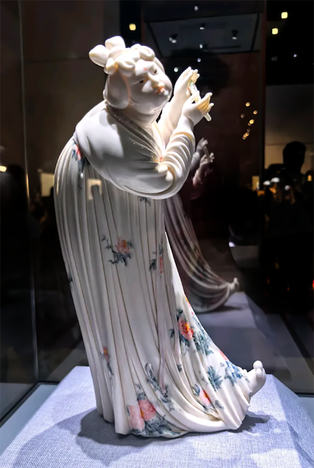 In the Qing dynasty, Dehua blanc de chine continued to develop with increasingly refined craftsmanship, with religious figures still dominating. During the Kangxi, Yongzheng, and Qianlong reigns, some Dehua blanc de chine was made for the court. Exports also intensified; European religious groups and aristocratic classes widely collected them. Many Dehua porcelain sculptures were converted into Western-style candlesticks or Virgin Mary figures, serving as typical carriers of cross-cultural exchange.
