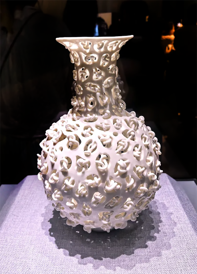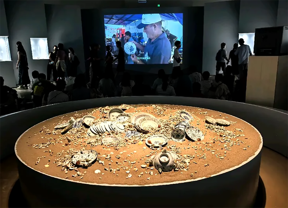 The second section was organized around the archaeological installation of the Taixing Shipwreck and displayed Dehua porcelain across dynasties in a timeline format, tracing the lineage of objects from the Xia and Shang periods through the Song, Yuan, Ming, and Qing.