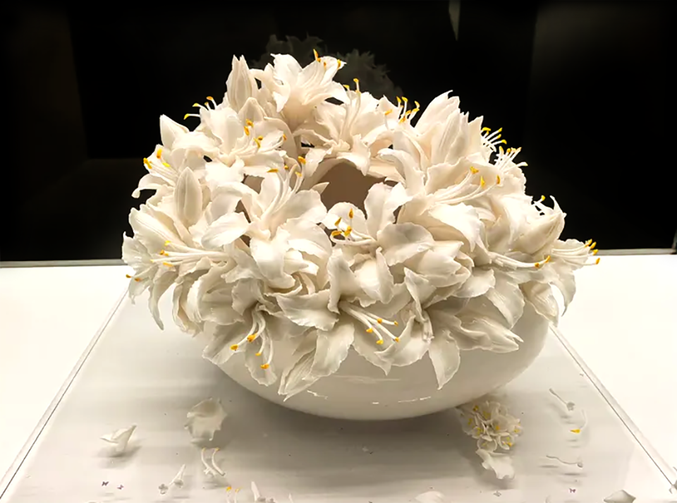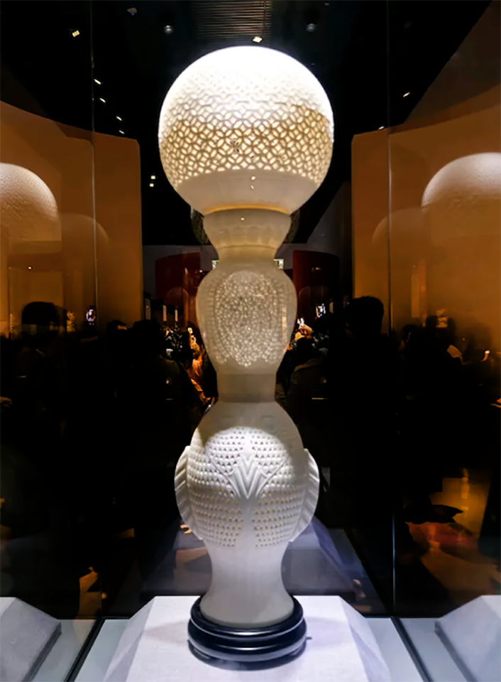 Exhibition highlights included: Expo Tripod, Mythology, Brilliant Colors · Wish-fulfilling Buddha of Many Treasures, Pearl of the Orient, Heavenly Maiden Scattering Flowers, Subduing the Tiger, Tang Charm, Purple Aura from the East, Bonded Vase, Blossoming Wealth Series, and Chinese Character Art · Hundred Family Surnames. These new works collectively embodied the sculptural power and decorative aesthetics of contemporary Dehua porcelain. The Taixing Shipwreck installation, meanwhile, connected export Dehua porcelain with the Maritime Silk Road, reinforcing the narrative of “historical excavation.”