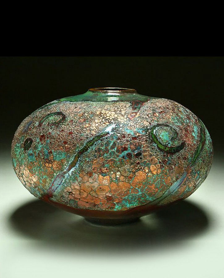 史蒂芬·福布斯德索尔(Steven Forbes-deSoule),专业的乐陶艺术家,居住在美国北卡罗来纳州西部,1975年开始职业生涯,烧制陶艺已经超过35年。1980年他得到视觉艺术和陶艺硕士以后在亚特兰大建立了工作室。1982年他开始开发特定釉料和所使用粘土矿物,加入了金属元素,让釉和裂纹的色彩在烧制和冷却过程中充分氧化,使之留下华丽又独一无二的作品。史蒂芬的作品众多国家的博物馆、企业和私人所收藏。他也被选为“100位南方的艺术家”(美国希弗公司出版)。